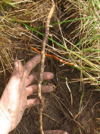 Kleur: middengroen blad met roodpaarse bloemschermen.