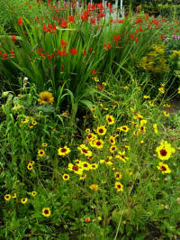 Coreopsis tinctoria Eenjarige met heldergele bloemen met een roodbruine